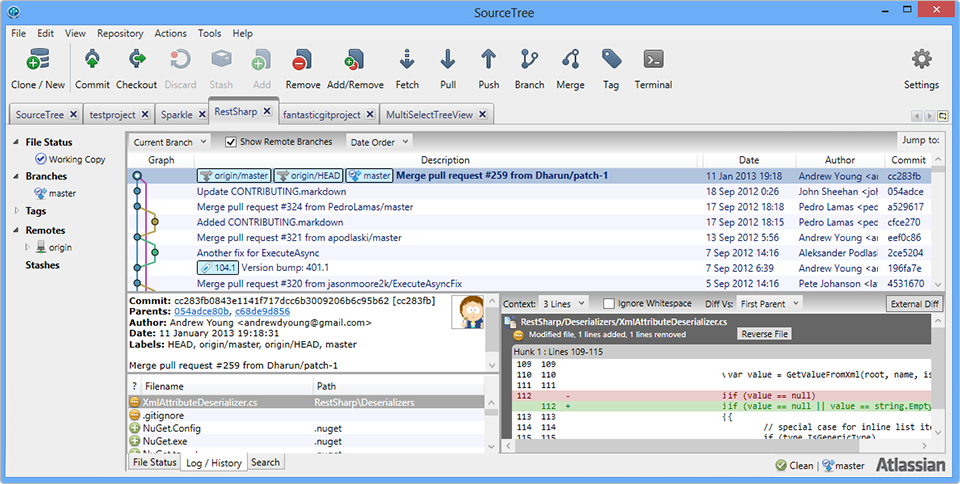 Für alle die Git benutzen kann ich euch auf jedenfall Sourcetree ans Herz legen. Eine sehr schöne GUI, übersichtlich & schnell. Mehr Infos bekommt ihr hier: [Nur Registrierte Mitglieder können diesen Inhalt sehen. ]